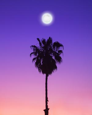 Lone Palm Tree Under Full Moon